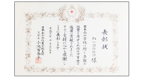 チャリティーTOYの寄付活動にて赤十字から表彰状を授与される。