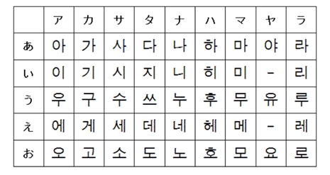 とりあえず、第一弾は「ア イ ウ エ オ」「아 이 우 에 오」の【あ行】。