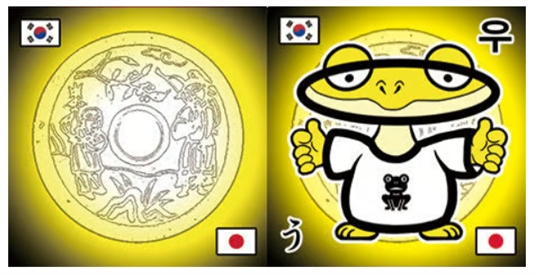 いろいろ調査したところ、韓国語のハングル文字と日本語の五十音はローマ字のような互換性があるということで、それをモチーフにするとにしました。