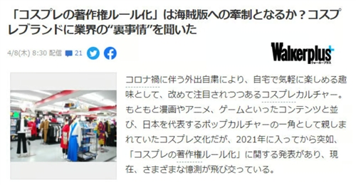 なぜ「コスプレ」なのかともうしますと、2021年から【コスプレの著作権ルール化】というのが政府から発表されたからです。