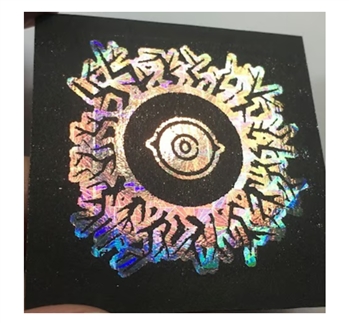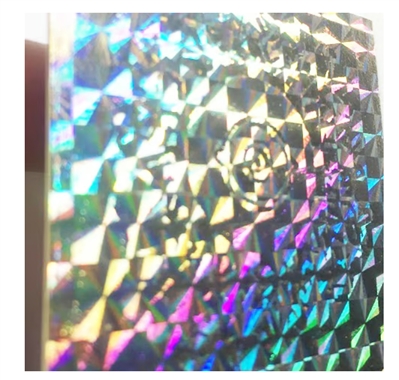 斜めにするとわかりやすいかな?「プリズムにプリズム箔を押してバックベアードを描いてます!」という、かなり特殊なシールになっております。